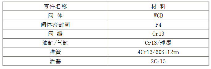 五、 QDY421F液動(dòng)緊急切斷閥--主要零件材料